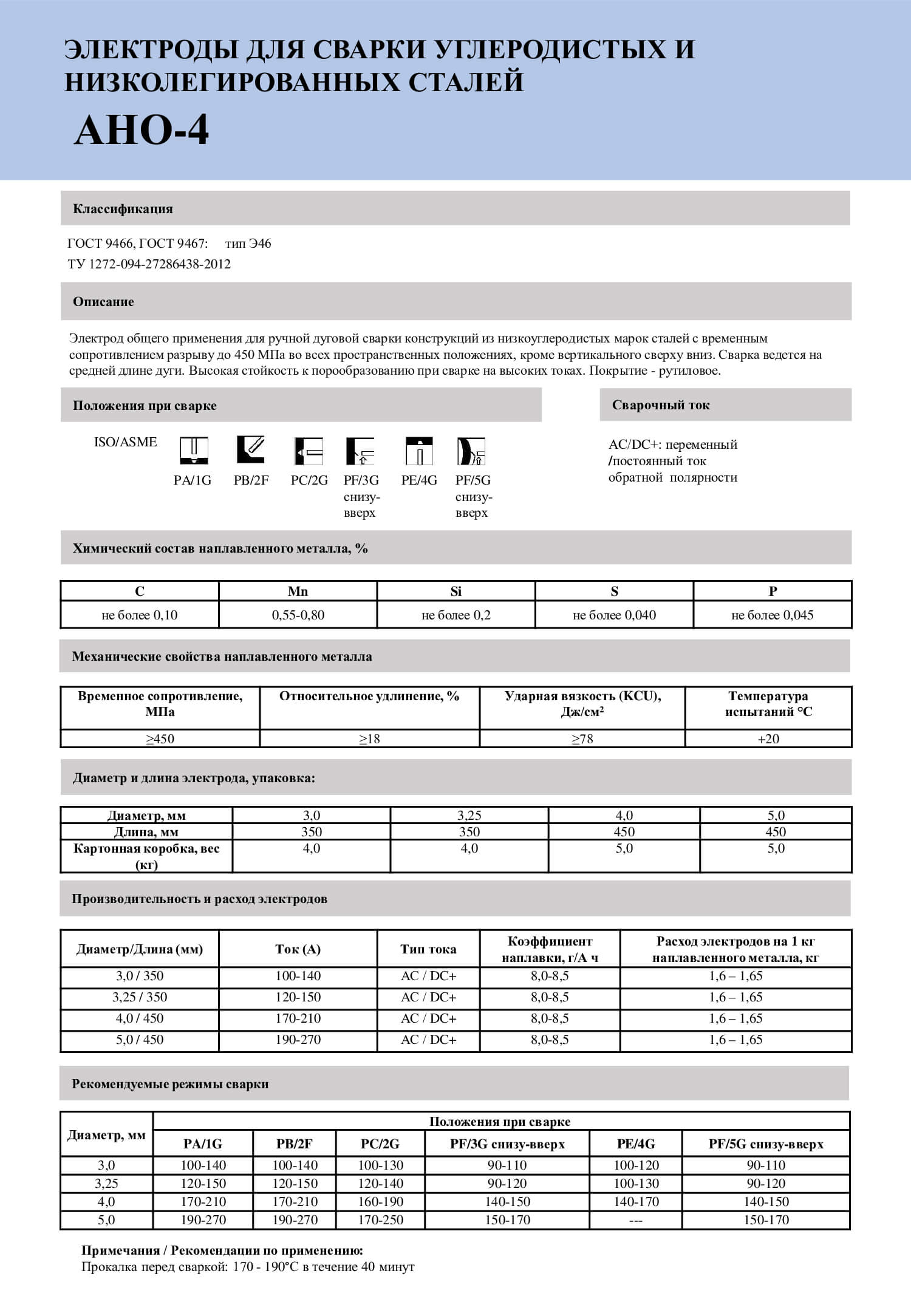 Высококачественный электрод общего применения для ручной дуговой сварки во всех пространственных положениях низкоуглеродистых сталей с нормативным пределом прочности до 450 МПа (включительно). Отличительные сварочно- технологические свойства даже при сварке металлоконструкций с плохой подготовкой кромок и сборкой.