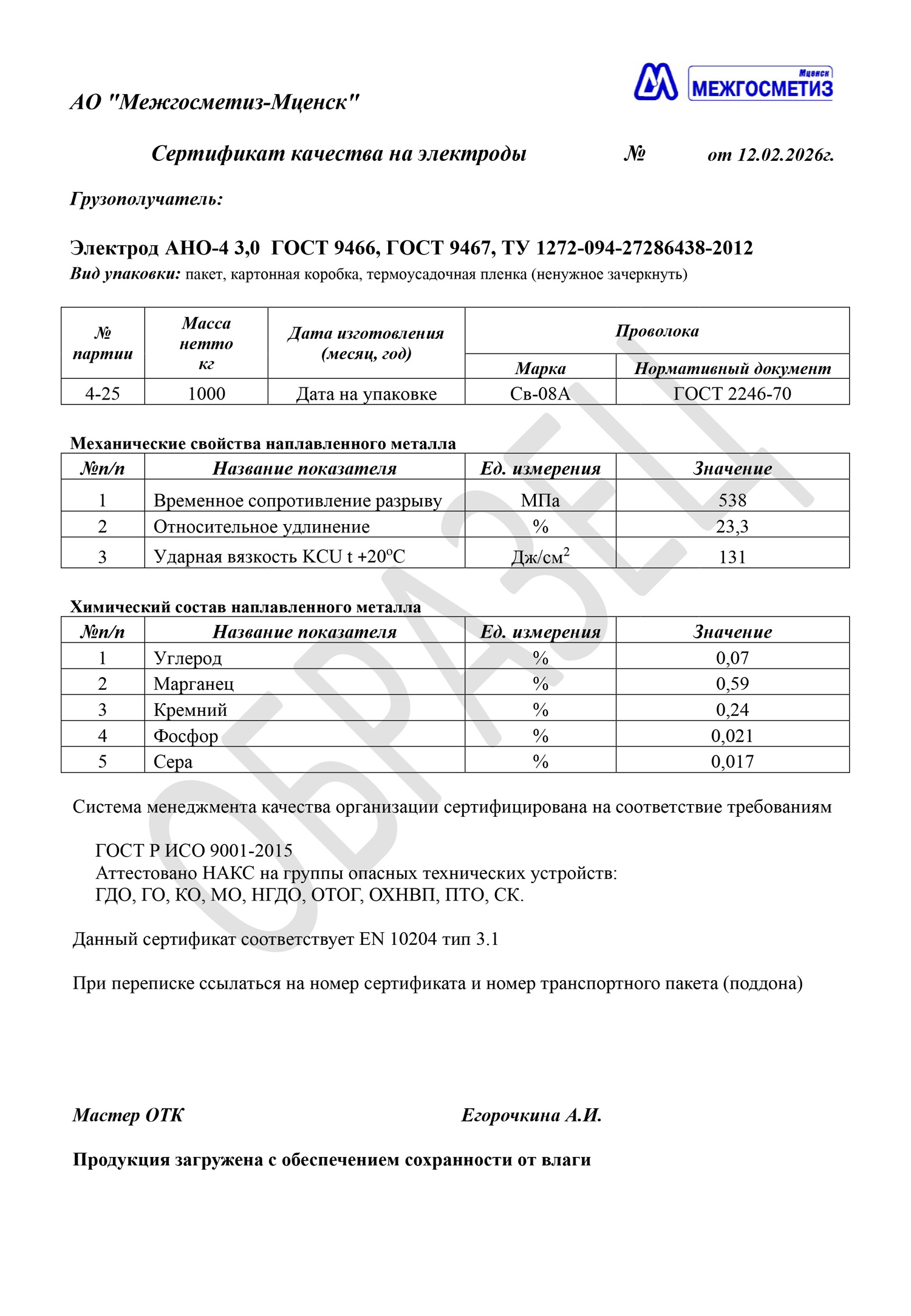 Марка электрода